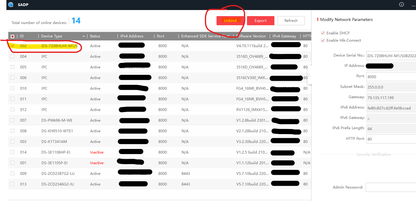 Useful video links below (unbinding using SADP Tool on PC Tool & Unbinding on the recorder)