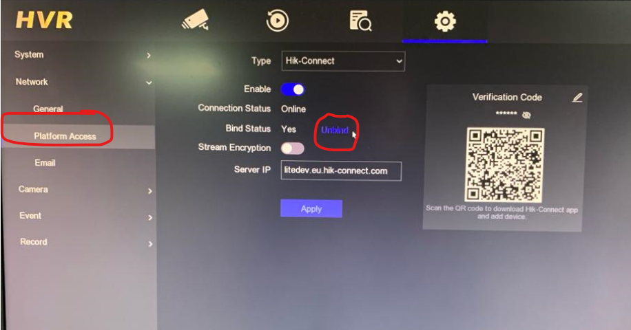- Unbind device from the recorder in Platform Access option on the recorder menu options